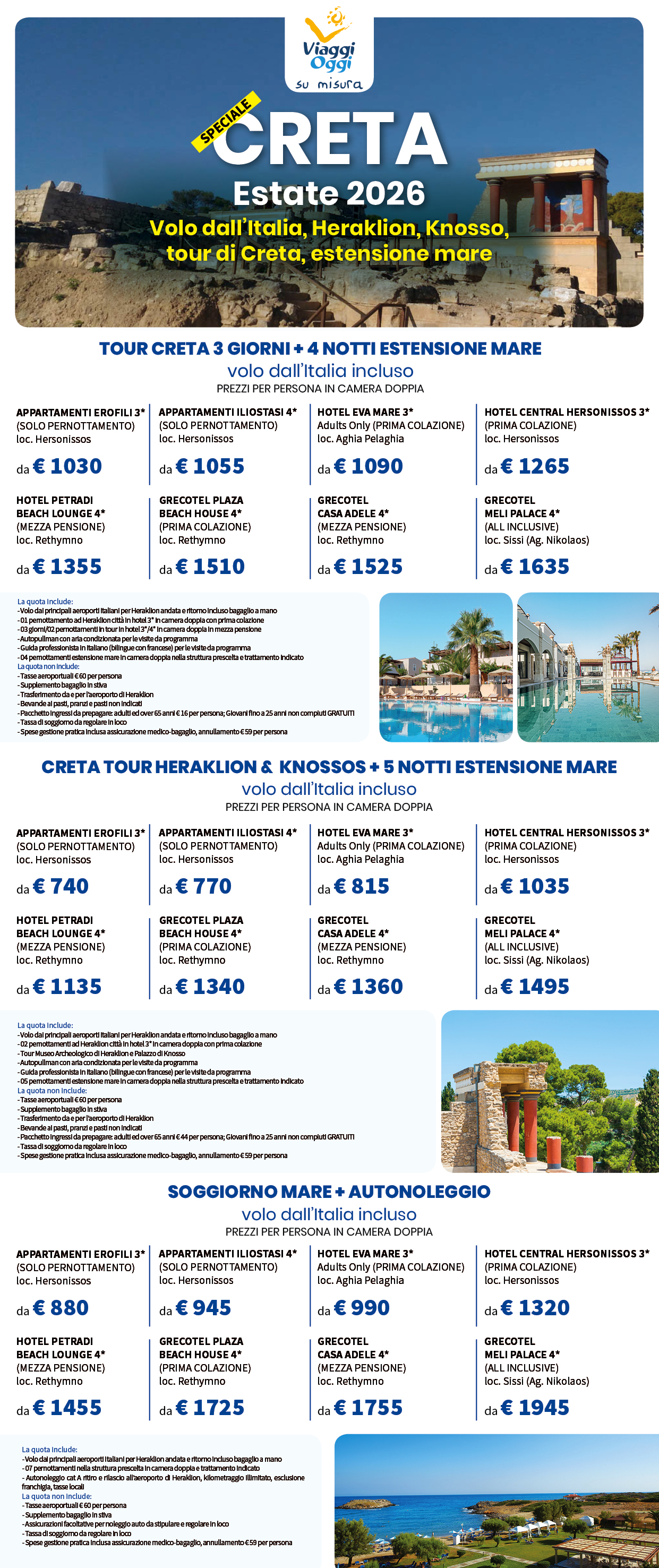 Nella nostra sezione locandine trovi tutte le nostre promozioni e pacchetti con le quote aggiornate, per una veloce consultazione di tutte le nostre offerte, le tariffe presenti sulle locandine sono sempre da confermare tramite booking online o contattandoci telefonicamente.